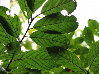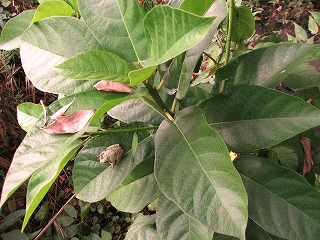 【左】ムクノキの食べ頃な大きな実   【右】イヌビワの葉にアマガエル