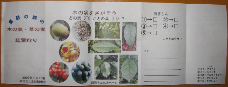 【行事名】 童話の森の木の実、草の実、紅葉狩り