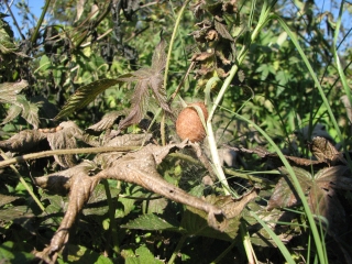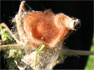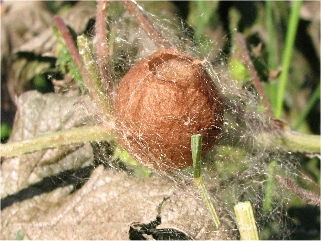 直径1cm位の繭(まゆ)?発見…。「蛾の繭だろう」と言ったら、N氏が、即、「クモの卵」と言ってくれました。それじゃあと言うことで、クモさんご免なさいと言いながら、解剖のはじまり…