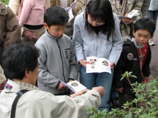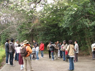 ほぼ満開の桜の下での開催でしたが、まさに「花冷え」という言葉どおりの日になりました。他の市町ではすでにお馴染みのところもありますが、半田市も遅ればせながら行政主催の受託観察会を行うことになり、今回が市環境センター主催行事の第一回目。あらかじめある程度の数の参加者を見込めるという点では張合いがあります。