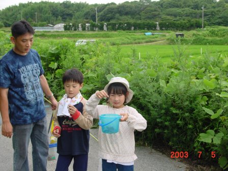 時間があったので農家の人に断わり、水田でタモを使い、生き物を採取しました。(近くに、シャジクモとコナギがたくさん生えたいる田んぼがありました)