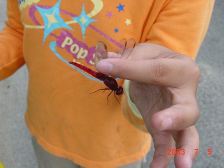 【左】ショウジョウトンボ赤くてきれいですね。ショウジョウの名は猩猩で中国の伝説の獣です。