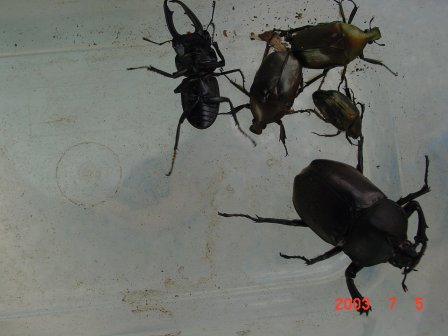 【左】カブトを見つけたよ。 【右】ノコギリクワガタも見つかったよ。