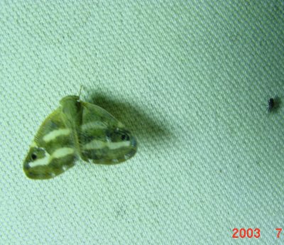 【左】フタオビコヤガ。イネの葉が食べるので嫌われます。山沿いの水田に多くみられます。
