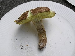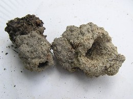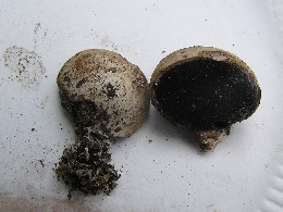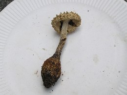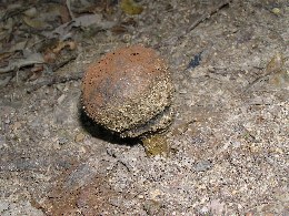 【左】ヒメカタショウロはシラタマタケと同じように白い玉です。ショウロ(松露)は食用ですが、こちらは有毒です。