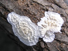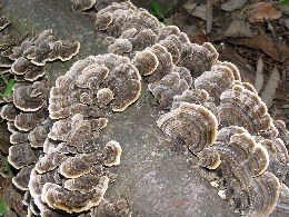 【左】ガン細胞の増殖を抑える作用があるといわれるカワラタケです。