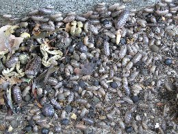 【右】落ち葉をめくったらたくさんのダンゴムシがいました。