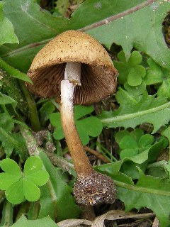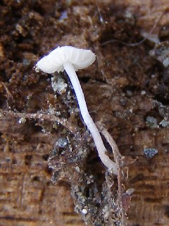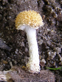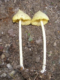 【右】カレバキツネタケ。アンモニアに反応して発生するそうです。(尿をした後などに)