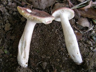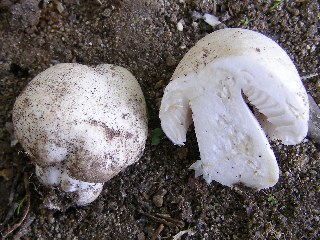 【右】シロツツタケ(食)。似た猛毒のキノコはツバがあります。白くツボがあるキノコは食べない方がいいです。