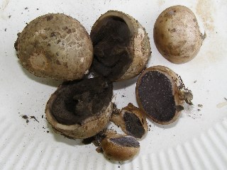 【中】ヒメカタショウロ(毒)。割ってみないと分かりません。小豆の饅頭みたいです。