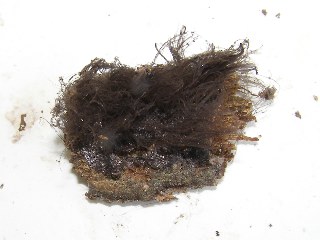 【右】ヒサカキを食べ糞を出したボクトウガ。
