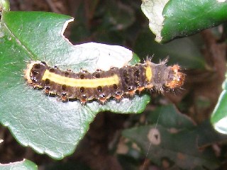【左】モンシロドクガ。ヒサカキについていましたがアカメガシワを食べるそうです。
