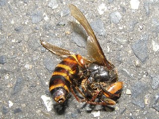 【右】ヒメスズメバチ。大きさはオオスズメバチくらいあるが攻撃性は無く、毒も弱いそうです。