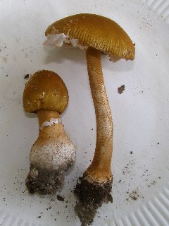 【中左】カバイロツルタケ(食)。子供が荒っぽい採集をしたみたいです。以前お酒と食べて酔いが回りました。