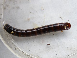 カミキリムシの穴   横に丸い穴でかわいている。幼虫の形のちがい。(記・竹内秀)