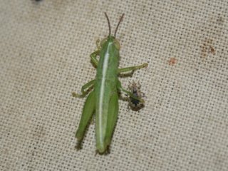 カラスヨトウ、ウンモンクチバ、ウスバカゲロウ(アリジゴクの親)、トンボの仲間、マダラカマドウマ、ヤブキリ、コロギス(コオロギとキリギリ スの会いの子で肉食)ムカデ、ダンゴムシ、アマガエル、ジョロウグモ