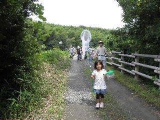 相撲の稽古が始まる乾坤院横の於大公園の駐車場に集合した。駐車場に落ちるヤマモモの実を見ながら(枝に手が届かず味わえなかった)緒川新池に移動した。子どもたちはタモと入れ物を持ち、お父さん、おばあちゃんもチョウトンボを追い回した。ハグロトンボやコシアキトンボ、シオカラトンボに夏アカネ?ひょいと遠ざかるのはオニヤンマ。ウスバキトンボもいた。池のふちを通って竹と雑木の林には、お目当てのカブトムシはいなかった。遠くの方で、ニイニイゼミの鳴き声。そして、アブラゼミらしき抜け殻のあと。