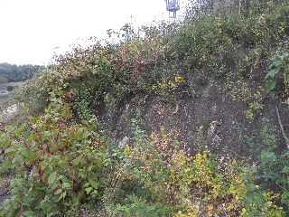 【左】道路拡張で見る影もない富士見台 【右】斜面を覆うコマツナギら