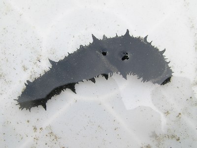 【右】マナマコ。色の変化があり知多半島では赤→青→黒の準で値段が下がります。