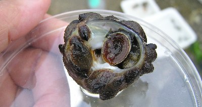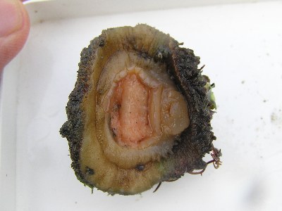 【右】クボガイです。クボガイの殻にシマメノウフネガイ着生していました。