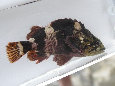 【右】クジメです。アイナメに似ているが尾びれが丸いのが違いです。
