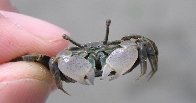 【左】直ぐに死んだまねをするオオギガニです。このカニはやさしいです。