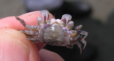 【右】ヨコバサミの仲間です。この仲間は、左右のハサミの大きさが同じです。