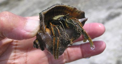 【左】イボニシがフジツボの周りにたくさんいました。フジツボを食べるそうです。