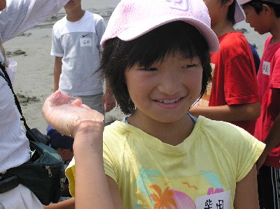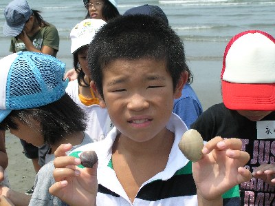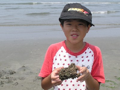 【左】マツカサガイの殻を見つけました。大きいのはアワビみたいだそうです。