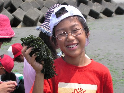 【右】ミルという海藻を見つけました。知多では食べないが、酢味噌和えなどで食べる地方もあるそうです。