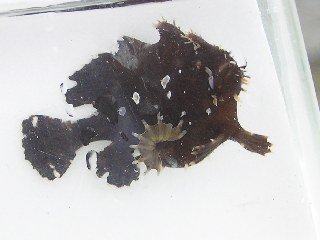 【左】ハナオコゼは流れ藻の中で生活しています。観察会では初めての採集です。