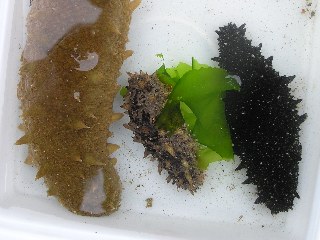 【右】色が違いますが、全てマナマコです。海底の地質により、色が変わるみたいです。
