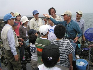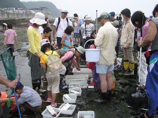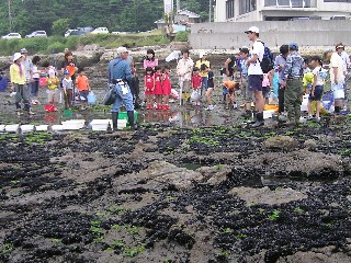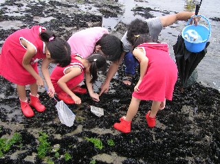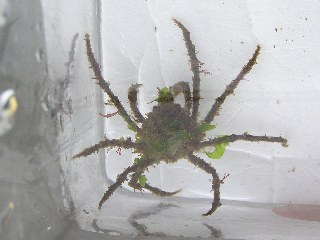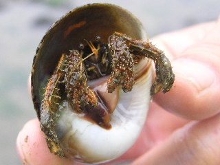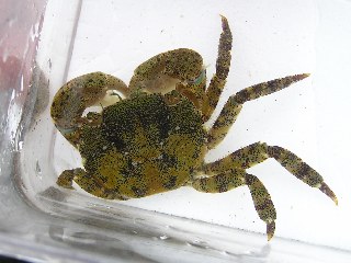 【左】ヒライソガニ。子供たちに魅力でたくさん採集しました。