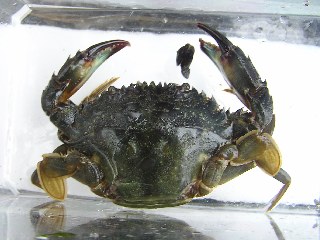 【左】イシガニ。挟む力が強いから注意しましょう。