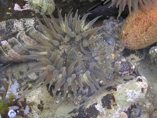 【中】ミドリイソギンチャク。ヨロイイソギンチャクより、少し深いところに住んでいます。
