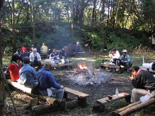 【左】いよいよ出発 【右】義朝の森でお昼の団らん