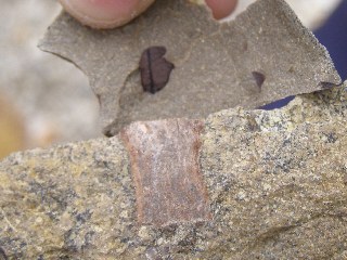 【左】火山灰を含んだ岩。