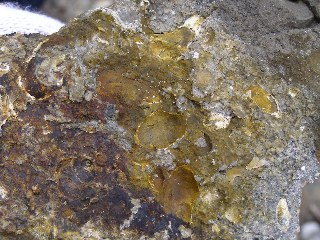 【中】ナマハゲフクロウニの化石を採集した跡。