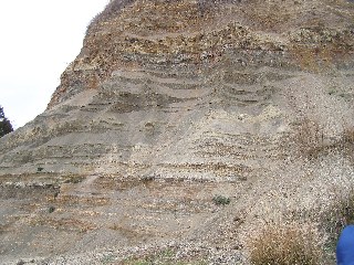 【右】ここの地層は、海底地すべりでたまった物だそうです。