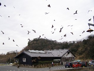 【中】たくさんのトビが集まってきました。