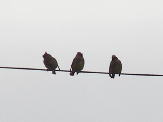 【右】ヒレンジャクが近くの電線に来ました。
