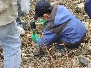 【中】化石が入っていそうな岩を見つけました。