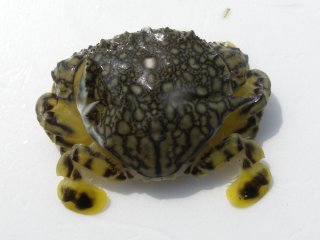 【中】アミメキンセンガニの腹。足が全部、水かきになっています。