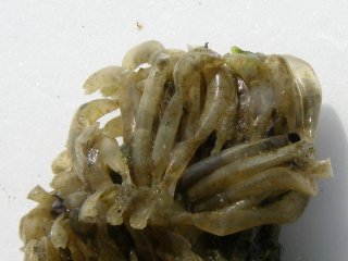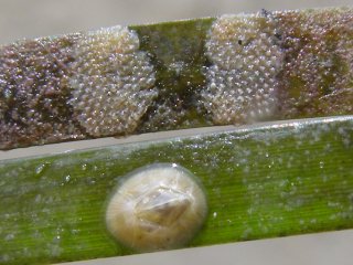【中】アマモのはに付着していました。外来のフジツボと上は何でしょう。