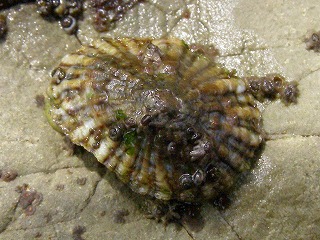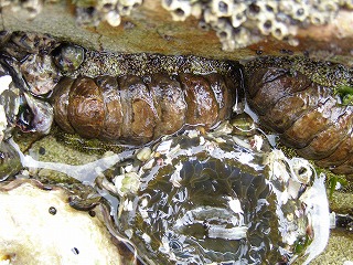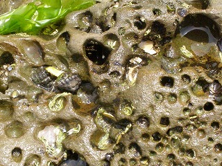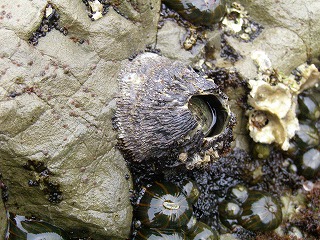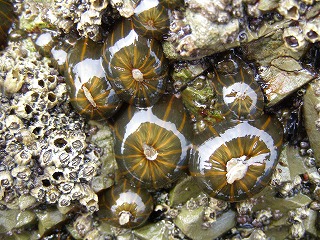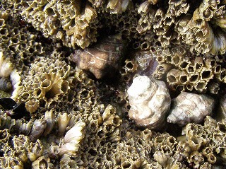 【右】イワフジツボとイボニシ。イボニシはフジツボを食べます。