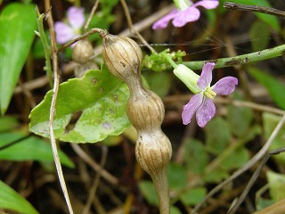 【左】ハマダイコンと種子、水に浮かびます。 【右】イシガニの脱皮。