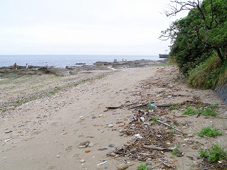 朝からの雨。観察会開始の直前に何とか雨もあがって中止は免れましたが、雨に出鼻をくじかれ、参加者の数は例年になく少ないものでした。雨を心配しながらも何組かの家族がみえて、磯での生物とのふれあいをみなさんと楽しむことができました。今回の観察会ではいつも見られるものに加えて、縞模様がきれいな南方系の魚「カゴカキダイ」の幼魚を観察することができました。(記・永田)