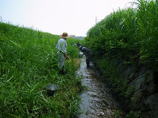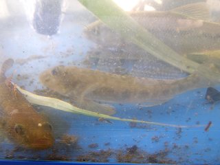 全体的にみて、確認された生物は昨年より多く、トピックとしてウナギ2個体(50〜60cm位)、タイコウチが確認されたのは大きな収穫でした。ウナギについては、一旦捕獲したものの、その後逃げられたのは非常に残念? でした。昨年は幼魚が確認されたこともあり、改めてウナギが生息する川という認識を強くしました。