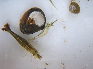 【右】シジミ、ミゾレヌマエビ、ヌカエビ