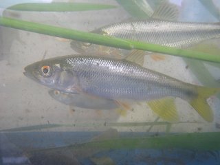 オイカワ、カワムツ、マハゼ、タイリクバラタナゴ、スミウキゴリ、メダカ、カダヤシ、ウナギ(2個体?、体長50〜60cm位)